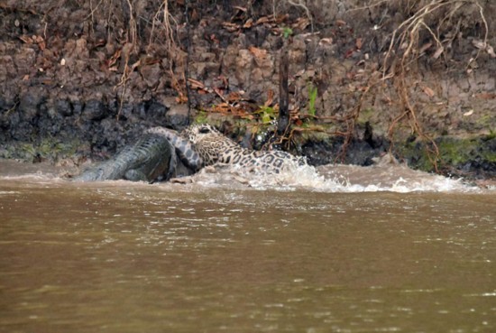 一只饑餓的美洲豹在河岸旁徘徊,在水中凱門鱷毫不知情的情況下,美洲豹迅速地跳入水中與凱門鱷展開搏斗。美洲豹大獲全勝后,將凱門鱷拖到森林里享用。