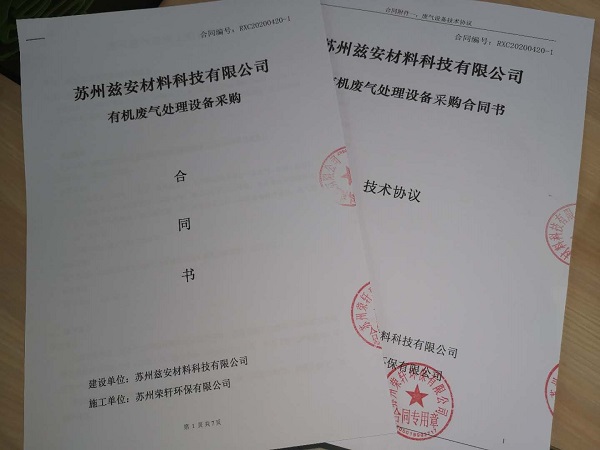 2020年4月20號,天氣晴朗,雖然疫情還沒有過去,但是絲毫沒有影響我們的工作熱情和進度。蘇州榮軒環(huán)保的小伙伴們一直兢兢業(yè)業(yè),持續(xù)耕耘在自己工作崗位中。一份耕耘,一份收獲,蘇州榮軒環(huán)保和蘇州茲安材料有限公司簽訂了VOC廢氣處理項目合同。