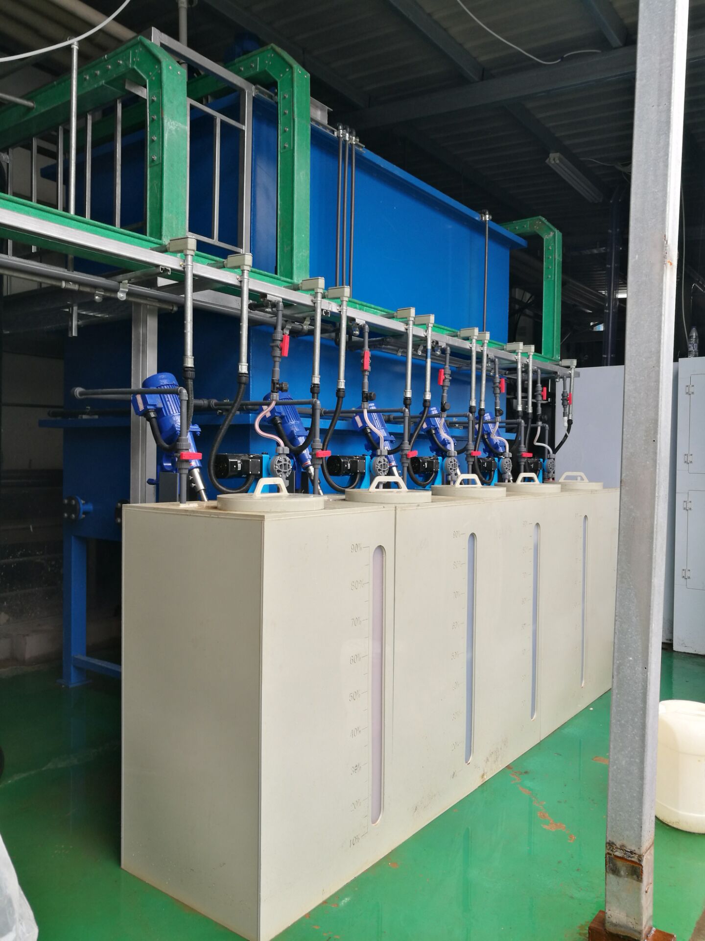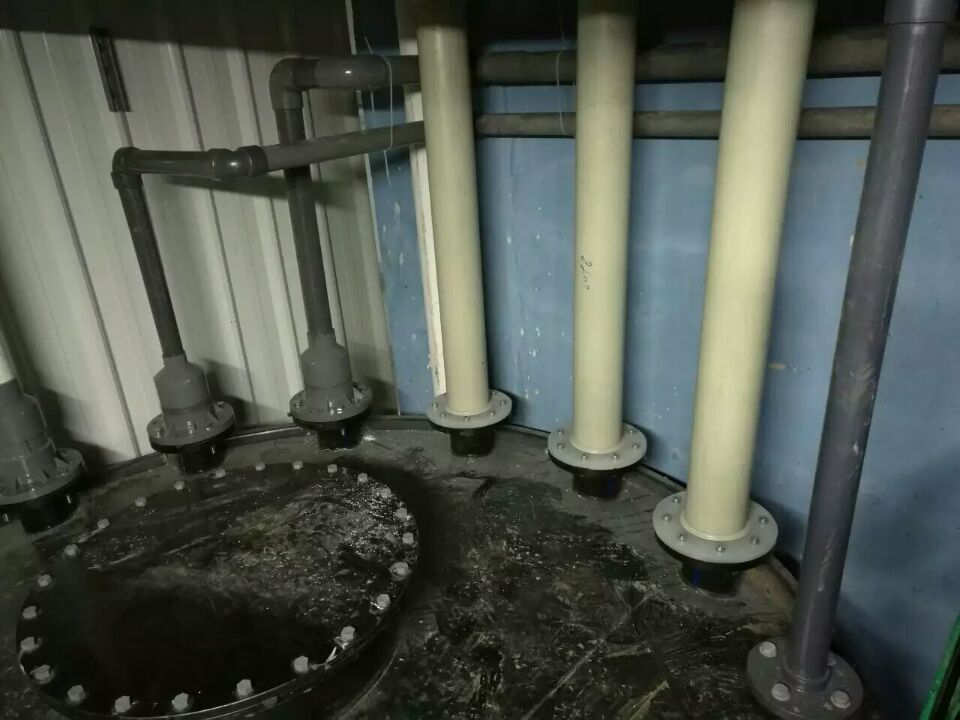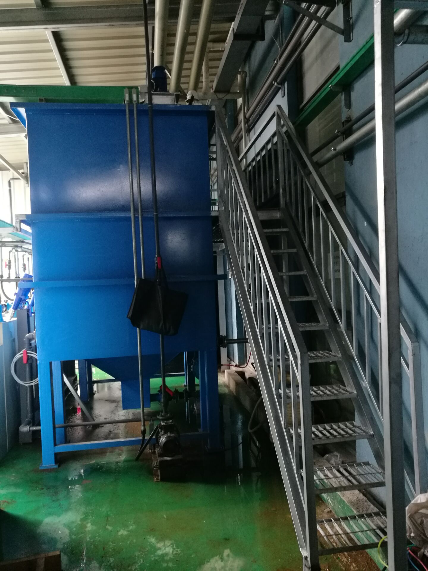 廢酸和產(chǎn)生的廢水產(chǎn)生后一次性排入容積為足夠容量的廢液儲(chǔ)槽,儲(chǔ)槽制作材質(zhì)為進(jìn)口HDPE,可長(zhǎng)時(shí)間耐受氫氟酸的腐蝕。然后經(jīng)由磁力泵打入一體化反應(yīng)沉淀槽中進(jìn)行化學(xué)反應(yīng),其中PAC,MgC12,H3PO4加入到混合槽中,NaOH經(jīng)由PH控制器自動(dòng)控制加入到反應(yīng)槽中,PAM加入到絮凝槽中,對(duì)廢水中的氟離子和氨氮進(jìn)行化學(xué)反應(yīng)。根據(jù)加藥量的大小,可達(dá)到去除污染物的目的。