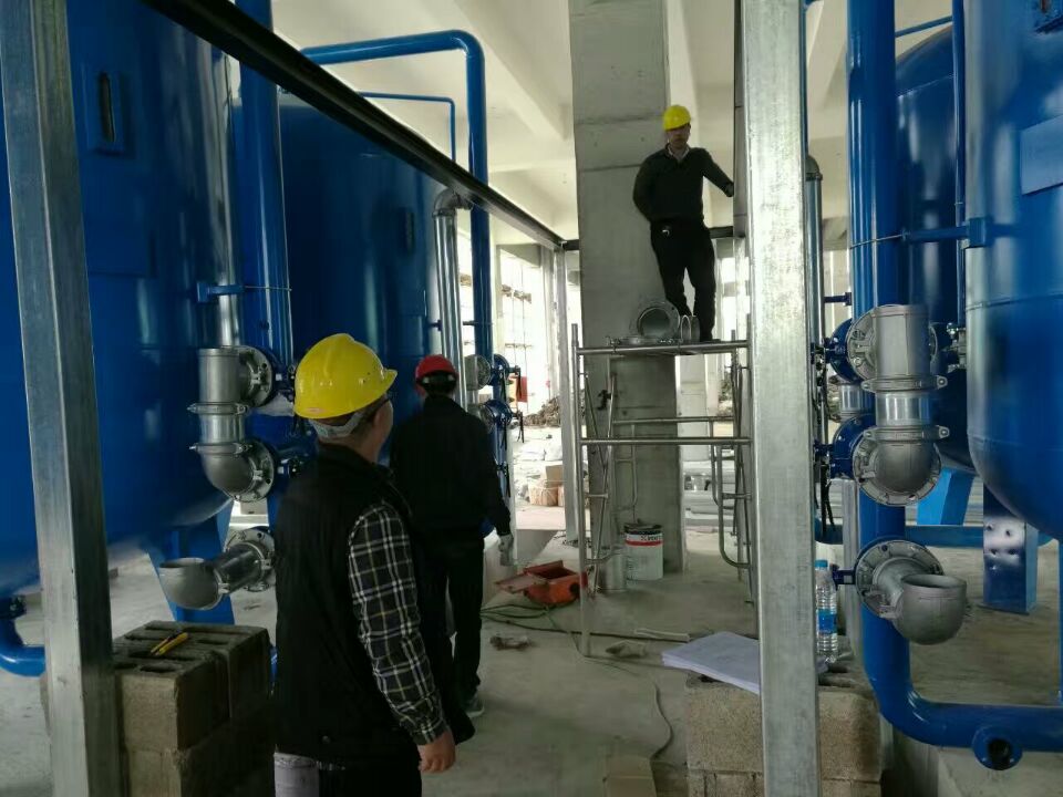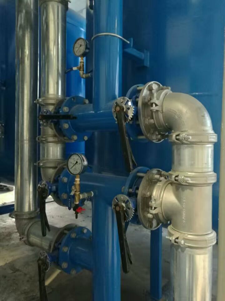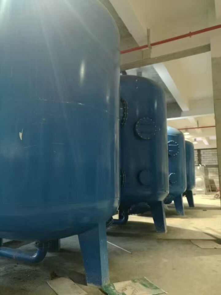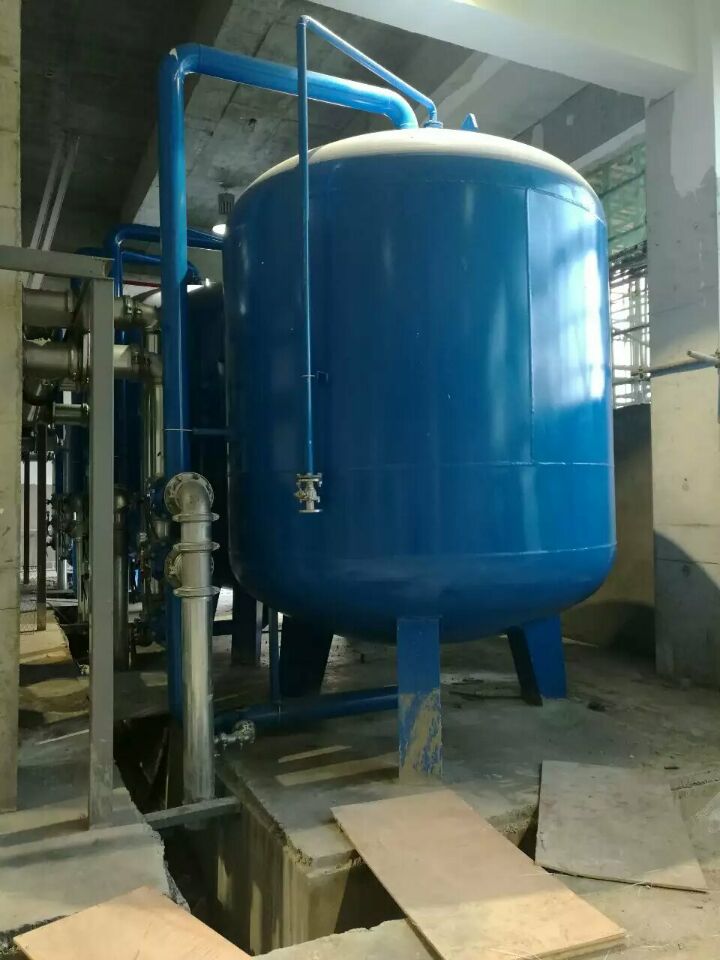 蘇州榮軒環(huán)保設(shè)計的這套自來水預(yù)處理設(shè)備,主要目的是去除原水中的懸浮物、膠體、有機物和余氯等妨礙后續(xù)反滲透運行的雜質(zhì),自來水首先進入砂濾罐:φ2.6m*4.4(總高),垂高2.0m,鋼板厚度10mm,級別Q235,內(nèi)表面襯膠防腐5mm,外表面SA2.5級噴砂除銹至金屬光澤后,噴涂阿克蘇諾貝爾油漆。內(nèi)部填充粗細(xì)粒徑石英沙,石英砂過濾器主要去除水中的懸浮物和膠體,水中大部分懸浮物和膠體在經(jīng)過濾料截留而去除。